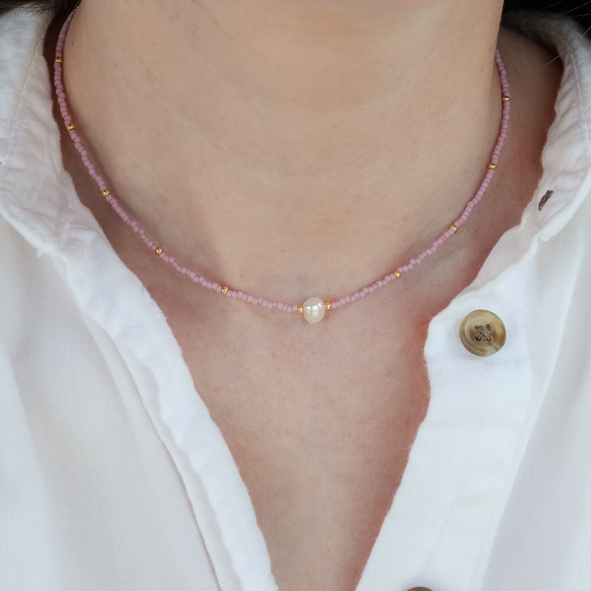 Acacia Necklace | Delicate Seed Bead and Pearl Necklace