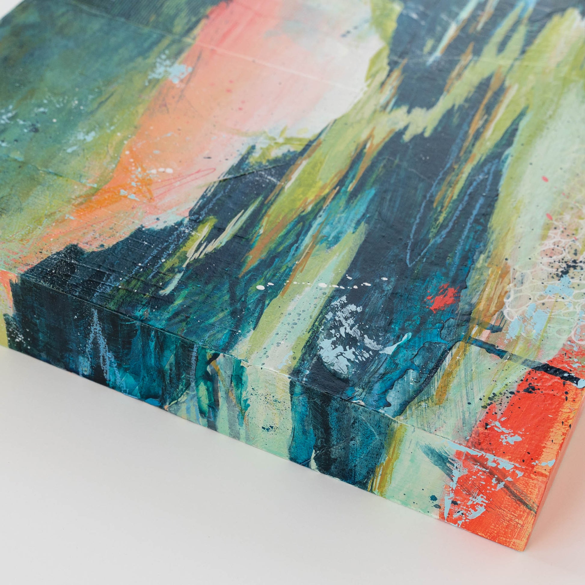 Original mixed media painting on wood panel.