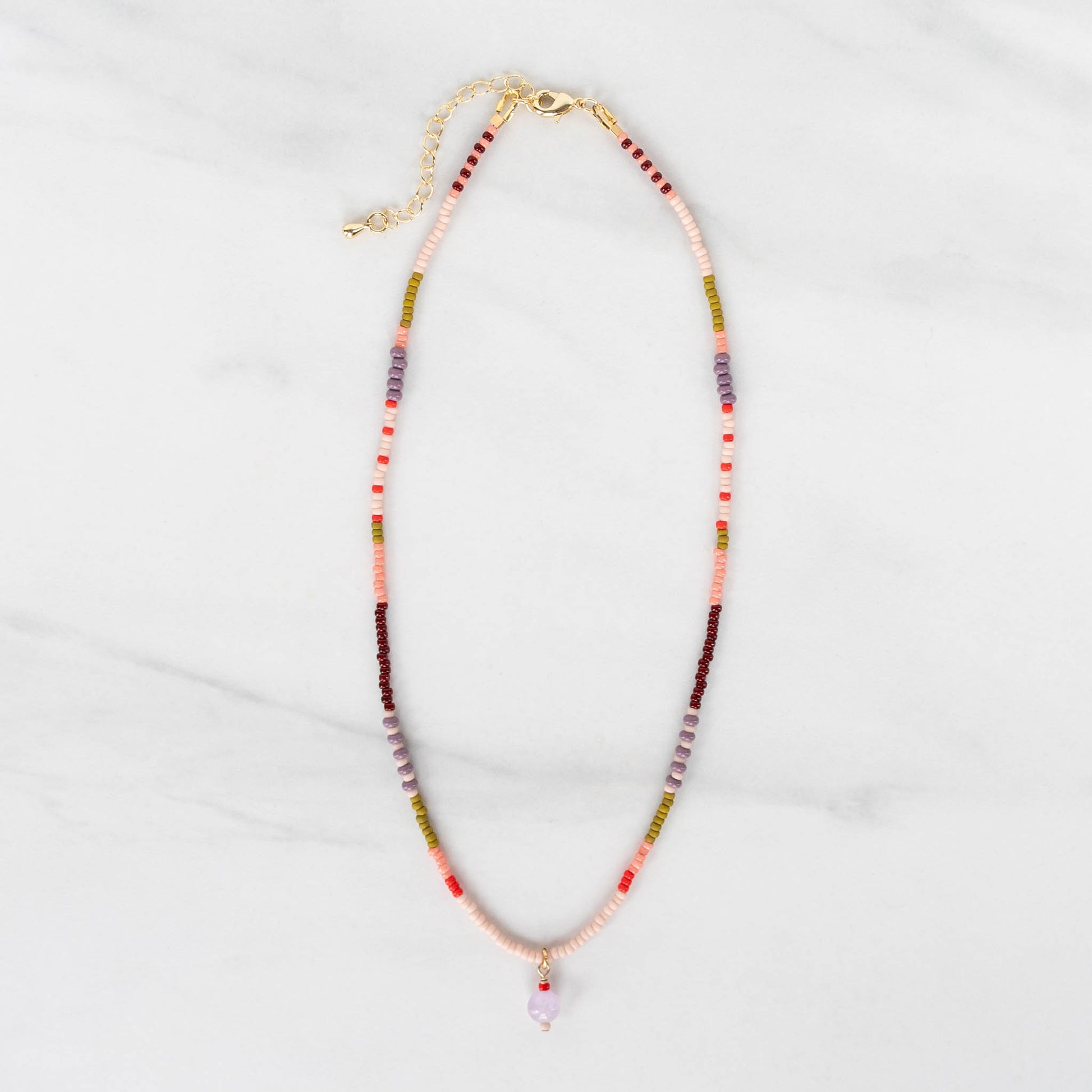 Heather Necklace | Colorful Seed Bead Necklace with Charm